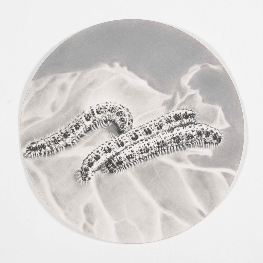 L’artista esplora il rapporto tra una verza, una colonia di bruchi e un’umana. Attraverso il disegno mette in luce la complessità di ciò che definiamo piccolo ed afferma un pensiero politico, dove l’antispecismo ribalta l’attitudine umana alla sopraffazione.