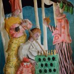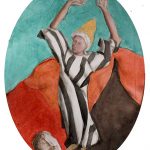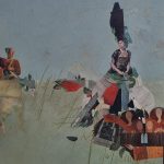 I lavori di Giulio Rigoni sono invece popolati da figure in movimento, che suonano e danzano, come se si trovassero in una dimensione atemporale e festosa. La vivacità delle scene è rappresentata anche dalle scelte cromatiche: i colori sono infatti estremamente accesi e vibranti, in perfetta armonia con gli scenari raffigurati.