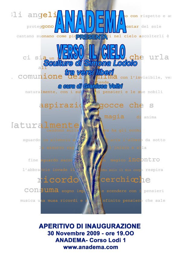 L’artista Simona Lodolo espone la mostra di scultura dal titolo “Verso il cielo - sculture tra versi liberi” nella quale rende manifesto il suo bisogno di dedicarsi alla bellezza, all’armonia, all’amore come sentimenti positivi che generano una “energia soave e leggera che si leva alta verso il cielo”.