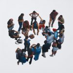 Nelle fotografie sagomate di Simona Uberto aggregazioni spontanee di persone si costituiscono nelle piazze, lungo le vie, la forma diviene un cerchio che facilita il dialogo. Poi qualcuno si muove, il cerchio si restringe o si dilata o si disperde, in un gioco ipnotico di attrazione e allontanamento; la mobilità è continua, come in un complesso sistema cellulare. Qui l’instans più comunicativo viene catturato dall’artista.