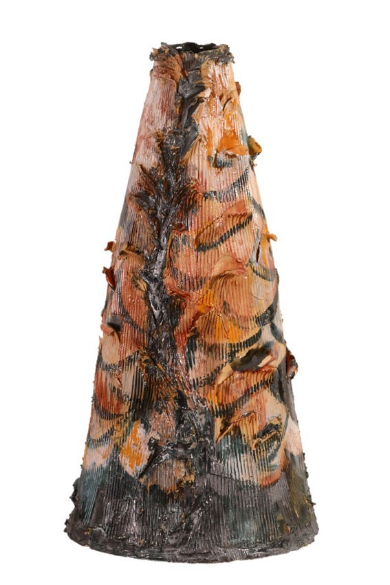 Sandro Barbagallo nella presentazione scrive che: “Queste forme hanno la caratteristica di mostrare bordi sfrangiati, come se nascessero da fogli di carta sovrapposti e diventassero quindi sensibili ad ogni colpo di vento o di sole. Ricordo che forme simili negli anni Novanta ispirarono un ciclo di quadri in rilievo. Per la prima volta in quegli anni la Weller aveva modellato alcuni vasi-scultura in cui forme di tronchi di cono sfogliati si alternavano a cilindri deformati. Avendo lavorato col cartone ondulato e amando le “compenetrazioni iridescenti” del colore tra le righe, le opere della Weller risultano quasi sempre scabre, accidentate, con effetti di strappo. Il lavoro della mano che, con piccoli attrezzi, modella l’argilla pettinandola, rigandola, sbucciandola come un frutto, dona ad ogni forma un senso di manualità irripetibile.”