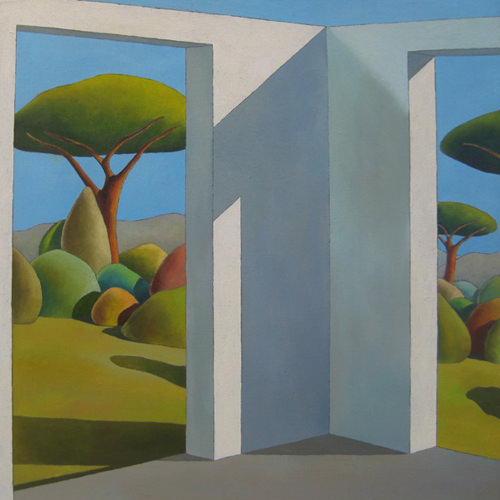 Nella galleria fiorentina situata all’interno delle ex Murate, l’artista espone un ciclo di recenti dipinti ad olio che raffigurano, con colori delicati e tonali, paesaggi e vedute che hanno in sé qualcosa di romantico e, al tempo stesso, misterioso. Intersecati o collegati fra loro in infinite soluzioni, a volte soltanto allusi, i suoi sono luoghi per lo più disabitati nei quali aria e luce si diffondono leggere, in silenzio; luoghi unici, surreali e possibili allo stesso tempo, nei quali lo spettatore è invitato ad entrare con lo stesso rispetto con cui sono stati costruiti. Gli spazi dell’ultima produzione cominciano ad accogliere anche alcune ombre che appartengono a qualcuno che forse li abita, che passa, o che aspetta; ma la figura umana sfugge, non è mai troppo nitida.