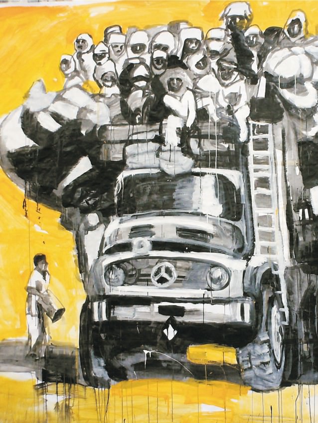 Con le sue pennellate veloci e sintetiche, l’artista descrive sia le masse in movimento, sia i singoli. Le loro espressioni di scoramento, tristezza, paura, disagio, speranza, attesa. Andare a cercar fortuna, abbandonare ciò che si conosce per intraprendere viaggi pieni di pericoli alla volta di un futuro ignoto implica un’enorme dose di coraggio. E il coraggio è la principale virtù degli eroi. Al di là dei santi di plastica dell’edonismo e del denaro, i veri eroi dei nostri tempi sono i migranti.