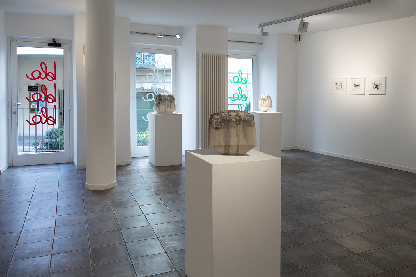 Simone Negri espone 11 opere dal titolo Accadimento, si tratta di forme scultoree in ceramica. Sulla superficie ancora umida di ogni lavorato, il pigmento in polvere lasciato agire e sedimentare a lungo, crea sulla superficie dei depositi casuali, delle tracce di un tempo trascorso che acquisiranno fissità solo grazie al successivo processo di cottura.