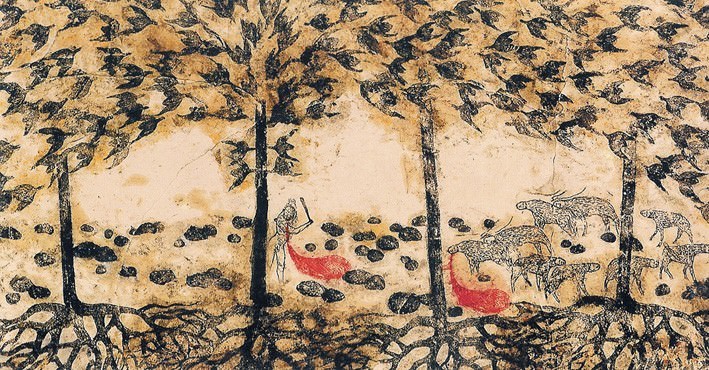 Le sue opere si presentano come spesse carte intelate, su cui sono stati impressi – non pitturati – dei disegni ottenuti da matrici