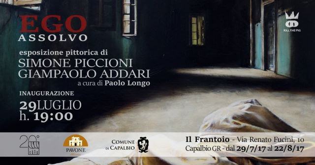 Dopo il successo della mostra risultato del lavoro degli artisti della prima TREELINE Artist Residency, l'associazione culturale Il Frantoio presenta il progetto EGO/ASSOLVO nato dalla volontà di due artisti di interpretare i "vizi" moderni e antichi; le opere di Simone Piccioni e di Giampaolo Addari fanno riflettere sui vizi danteschi e sul fatto se possano essere ancora considerati peccaminosi o se questi abbiano lasciato il passo ad altri fenomeni che rappresentano meglio la distorsione della società. I vizi sono anche “sociali”, ossia hanno un riflesso sulla vita associata, lo sgretolamento e la dissoluzione dei rapporti umani. Dal confronto delle opere, lo spettatore si troverà a fare una scelta: immergersi nella visione di Simone Piccioni, meticolosa e satura di simboli, dove la luce sembra fissata in un attimo assoluto che la pittura blocca nel suo corpo liquido prima che si dissolva nell’oblio; oppure in quella di Giampaolo Addari, dove le opere sottraggono chi le osserva dalla necessità dell’identificazione forzata donando la possibilità di perdersi nella materia che le compone e di ricostruire una visione personale dell'immagine osservata.