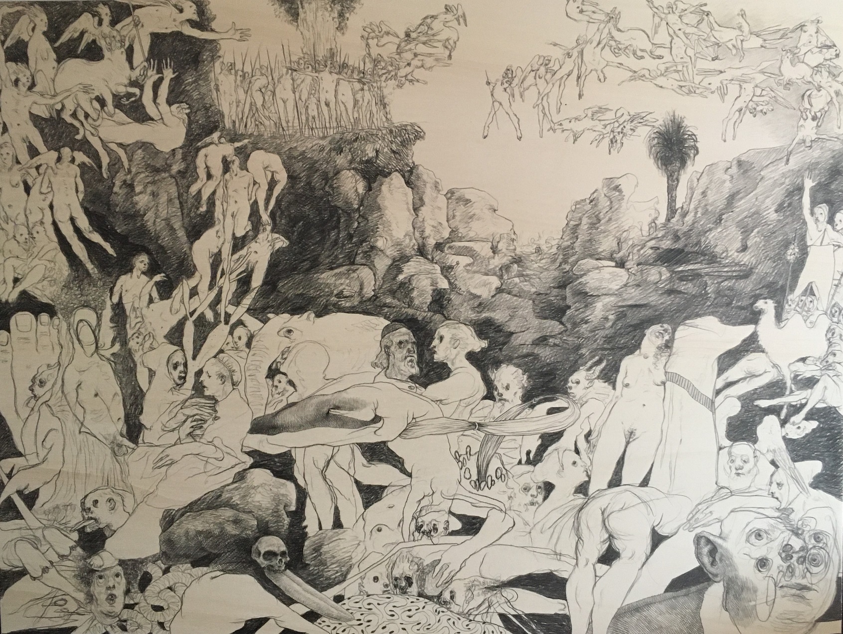 Dikotomica è un progetto che ha i suoi cardini nella ricerca figurativa e nella condizione esistenziale dell’uomo. I due artisti in dialogo affrontano il tema della relazione con l’alterità, cioè con il mondo esterno e con l’estraneità, attraverso due modalità contrapposte nel rapporto fra soggetto e oggetto. Da un lato l’introspezione e lo scavo psichico rivelatori delle profondità dell’io, dall’altro la melanconia estatica ed estetica che scaturisce dall’incontro/scontro col reale. A rendere manifeste queste polarità concorrono due linguaggi differenti: da una parte la distorsione di un disegno nervoso e spezzato come quello di Stuto, dall’altra la sequenza di frames dalla controllata struttura formale che si dipanano in un’incredibile varietà di grigi in Vassallo.