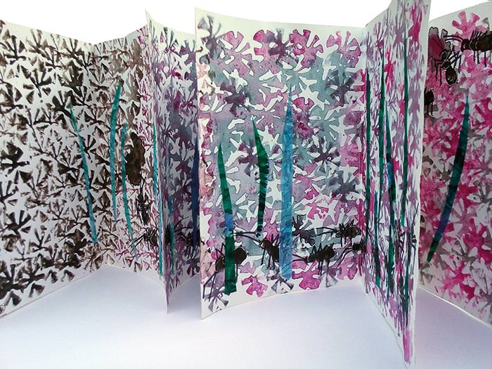 La natura che troviamo in mostra allo SBLU_spazioalbello è la suggestione di uno stato, sia esso vegetale o animale, che aspira all’essenza e all’armonia dell’essere. Un racconto che si dipana tra le pagine dei numerosi libri d’artista realizzati con l’ausilio di veline e collage.