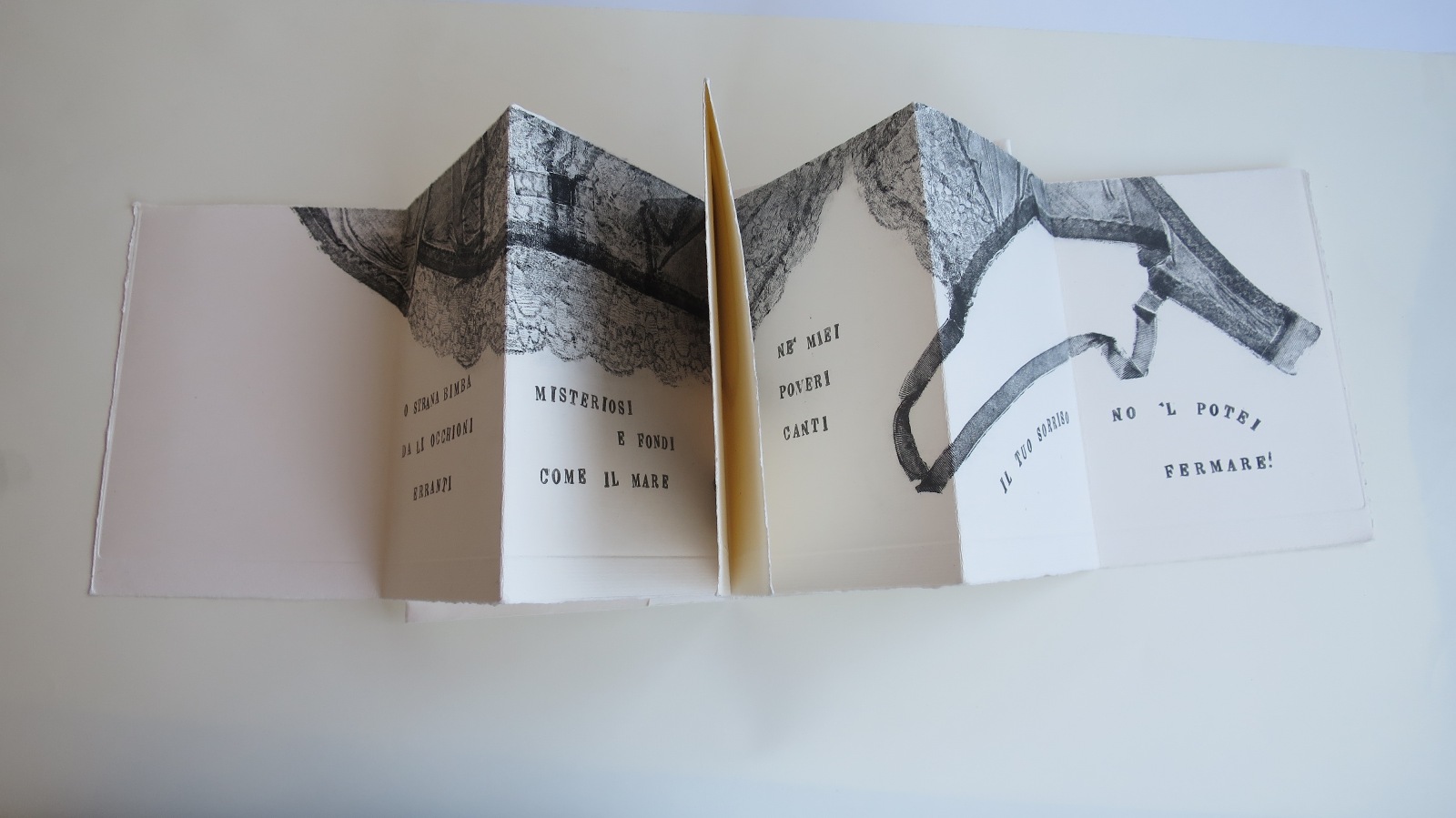 Il libro d’artista, che ha avuto il suo momento di massima fioritura con le Avanguardie storiche del Novecento e in particolare con il Futurismo, è un medium artistico che non ha perso la capacità di coinvolgere anche ai giorni nostri, nel tempo della tecnologia e del digitale, per la sua prerogativa di trasmettere emozioni e affascinare. Opere tradizionalmente pensate per una fruizione intima che instaura un rapporto personale tra l’artista che le ha create e il collezionista che le custodisce. Simonetta Ferrante e Sara Montani offrono al visitatore della mostra una serie di libri d’artista realizzati con originalità e delicatezza presentati in un allestimento particolare, inconsueto, studiato per visualizzare al meglio questi lavori che fanno del rapporto tra pensiero e immagine la fonte della loro unicità: una grande installazione dove i libri sono sculture, dipinti, opere d’arte da sfogliare.