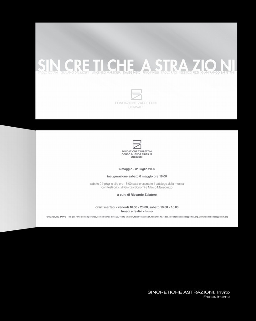 Il programma espositivo della Fondazione Zappettini prosegue con la presentazione della mostra SINCRETICHE ASTRAZIONI che sarà inaugurata sabato 6 maggio alle ore 18:00 nelle sale della sede principale di Chiavari.