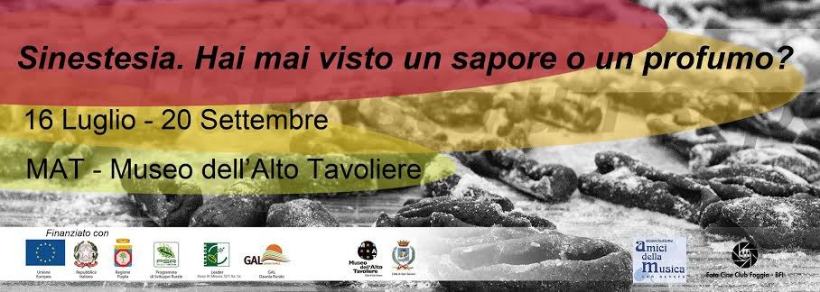 giovedì 16 luglio, alle ore 20.00, presso gli spazi espositivi del MAT Museo dell'Alto Tavoliere di San Severo, sarà inaugurata la mostra fotografica collettiva dal titolo "SINESTESIA. HAI MAI VISTO UN SAPORE O UN PROFUMO?", a cura delFoto Cine Club di Foggia.