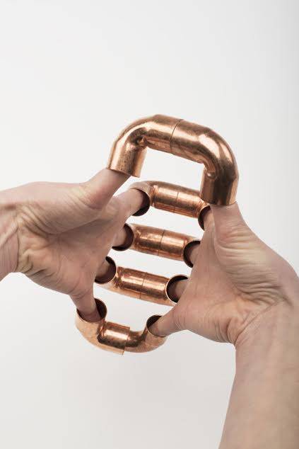 (Makara, piombo fuso, 2016; Aramen, rame anodizzato, 2016; Yurugu, ferro magnetizzato, 2016).