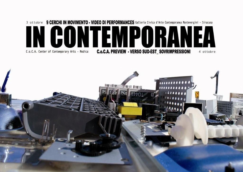 In occasione della Quinta Giornata del Contemporaneo promossa da A.M.A.C.I, si svolge SIRACUSA/MODICA - IN CONTEMPORANEA, evento promosso da Regione Sicilia, Provincia di Ragusa, Comune di Siracusa, Comune di Modica in collaborazione con la Galleria Civica d’Arte Contemporanea Montevergini di Siracusa e l’istituendo Center of Contemporary Arts di Modica. A Siracusa dal 3 al 4 Ottobre, 9 cerchi in movimento ospita le performances in video di artisti, in transito tra i moti dell’anima e l’indecifrabilità del presente, che si muovono in zone di confine tra il teatro, la danza, le arti visive, attraversamento non certamente nuovo nelle intenzioni di superare le barriere tra le arti. Lo spettatore sarà coinvolto in un percorso, 9cerchi in movimento a partire dall’Antico Mercato per finire alla Galleria Civica d’Arte Contemporanea Montevergini. Il percorso rispecchia il mito di Hainuwele, originario dell’isola di Ceram in Indonesia, per i suoi riferimenti alla ricomposizione rituale tra uomo e natura e per il suo essere, trasposto all’oggi, performativo.