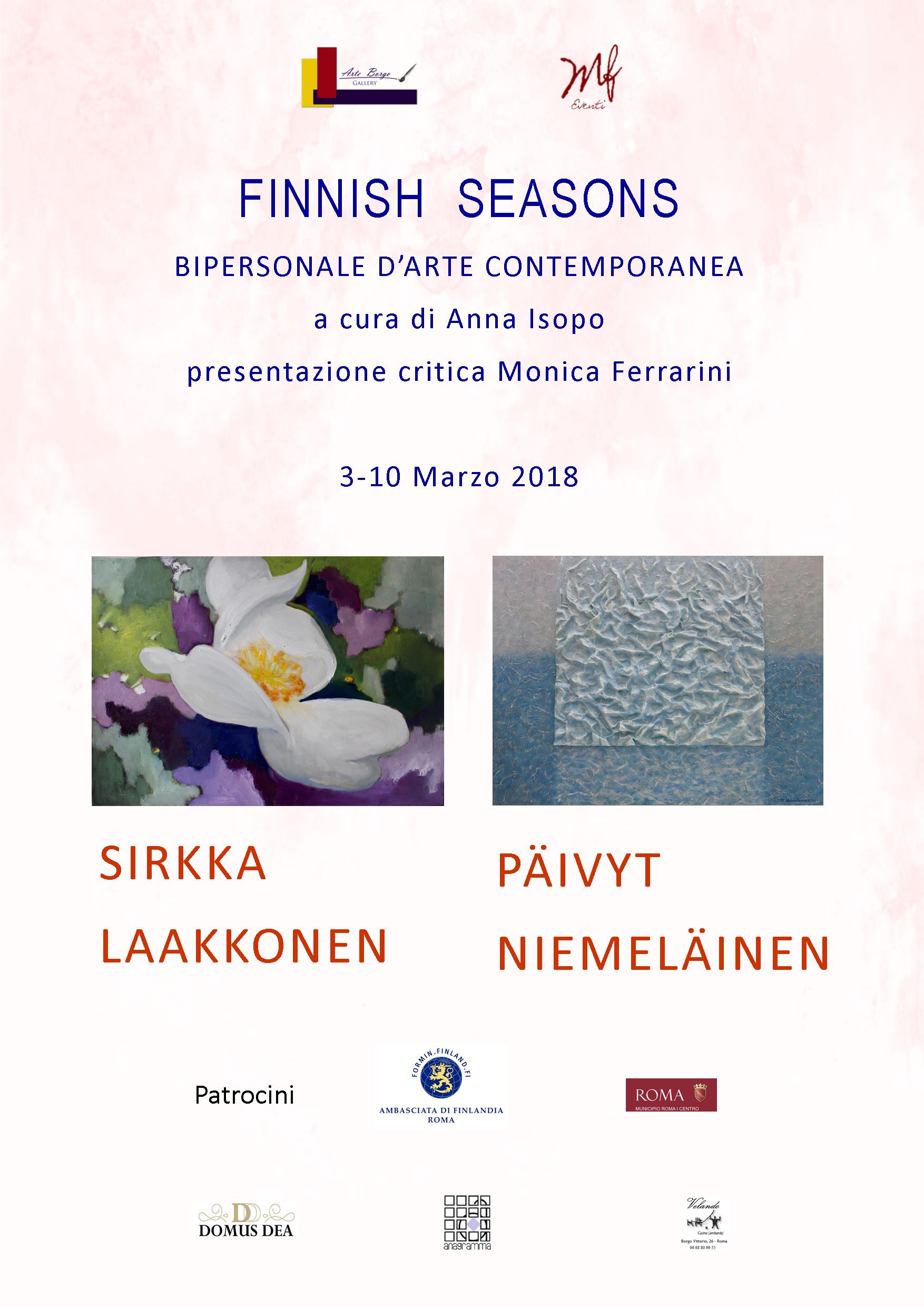 Il giorno 3 Marzo alle ore 18.00 si inaugura presso lo spazio espositivo di Arte Borgo Gallery in Borgo Vittorio 25 Roma la mostra d’arte contemporanea dal titolo “FINNISH SEASONS”