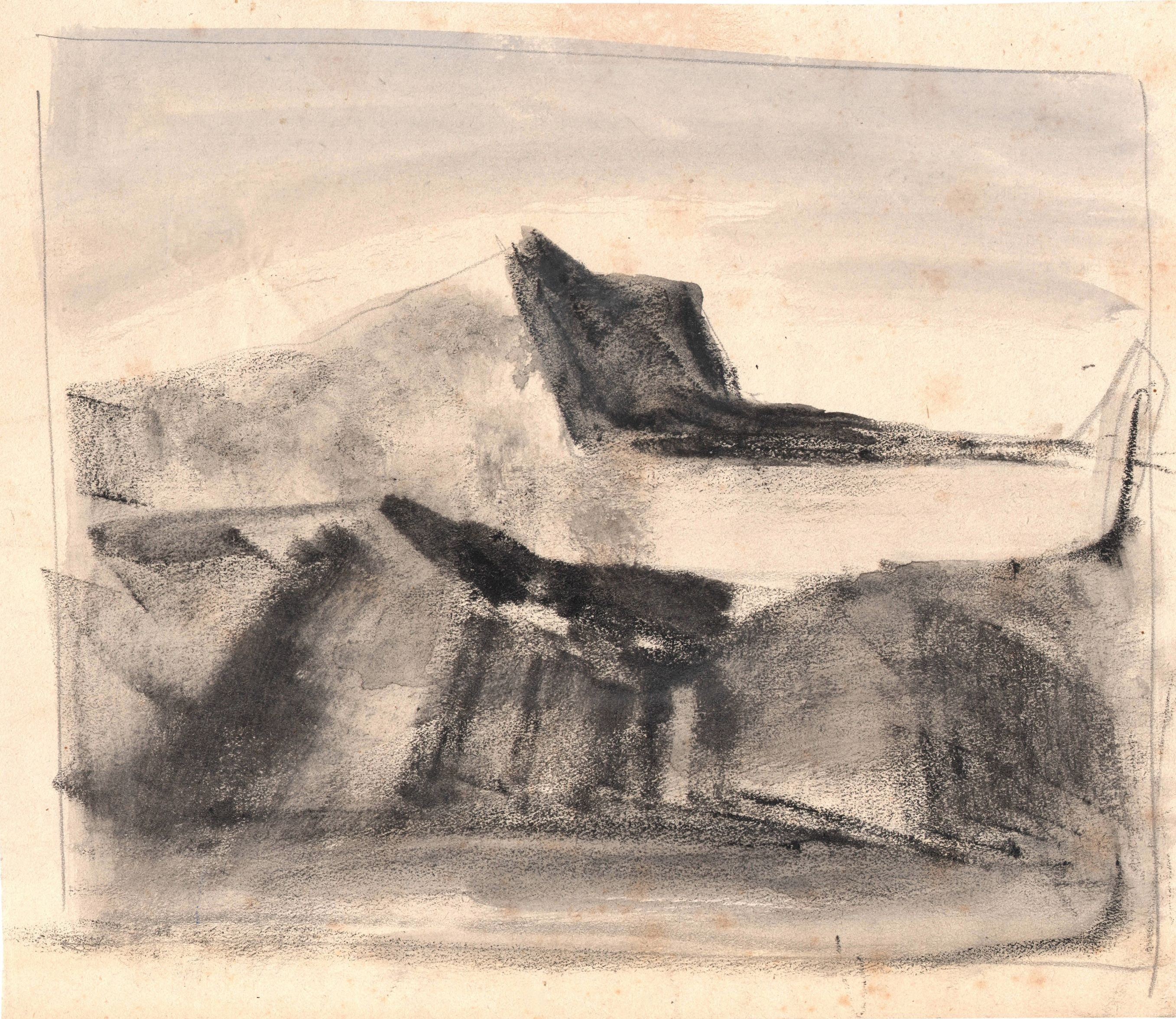 - Alcuni paesaggi alpini, che testimoniano l’amore di Sironi per la montagna, nato durante la sua esperienza di volontario durante la Prima guerra mondiale (in mostra anche un Paesaggio con soldati del 1916). Tra questi è presente un insolito disegno su carta grigia, Paesaggio con montagne e alberi, a matita grassa e matita, risalente circa al 1923.