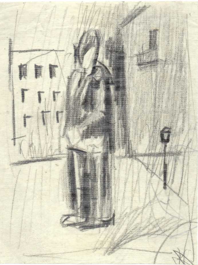 - Un Nudo (Composizione con figure), del 1919/1920, realizzato sul retro di un modulo per l’abbonamento ad Ardita, il supplemento culturale della rivista Il Popolo d’Italia.