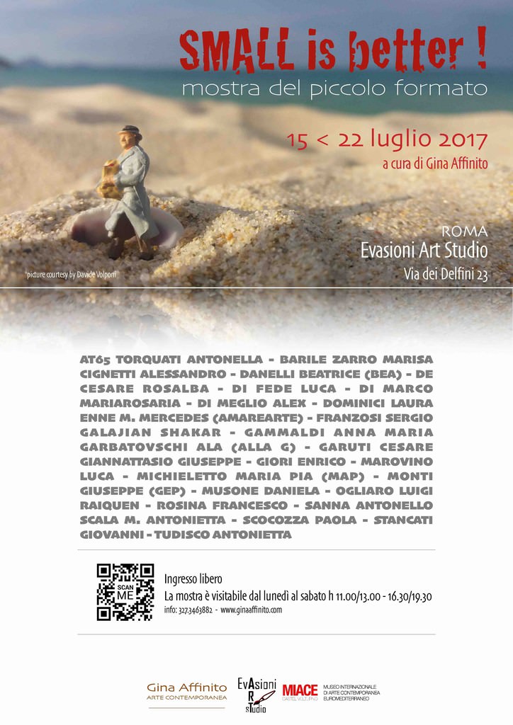 Small is Better! = Piccolo è Meglio! si propone di presentare, attraverso una mostra espositiva, opere d’arte di piccolo formato per vivere da vicino la vivacità, l’espressione e la bellezza dell’arte, anche quella di dimensioni contenute; dimensioni che accentuano una funzionale occasione di scambio, veloce e dinamico, tra l’arte del nostro tempo e il suo pubblico, non ultimo, il turista di passaggio.