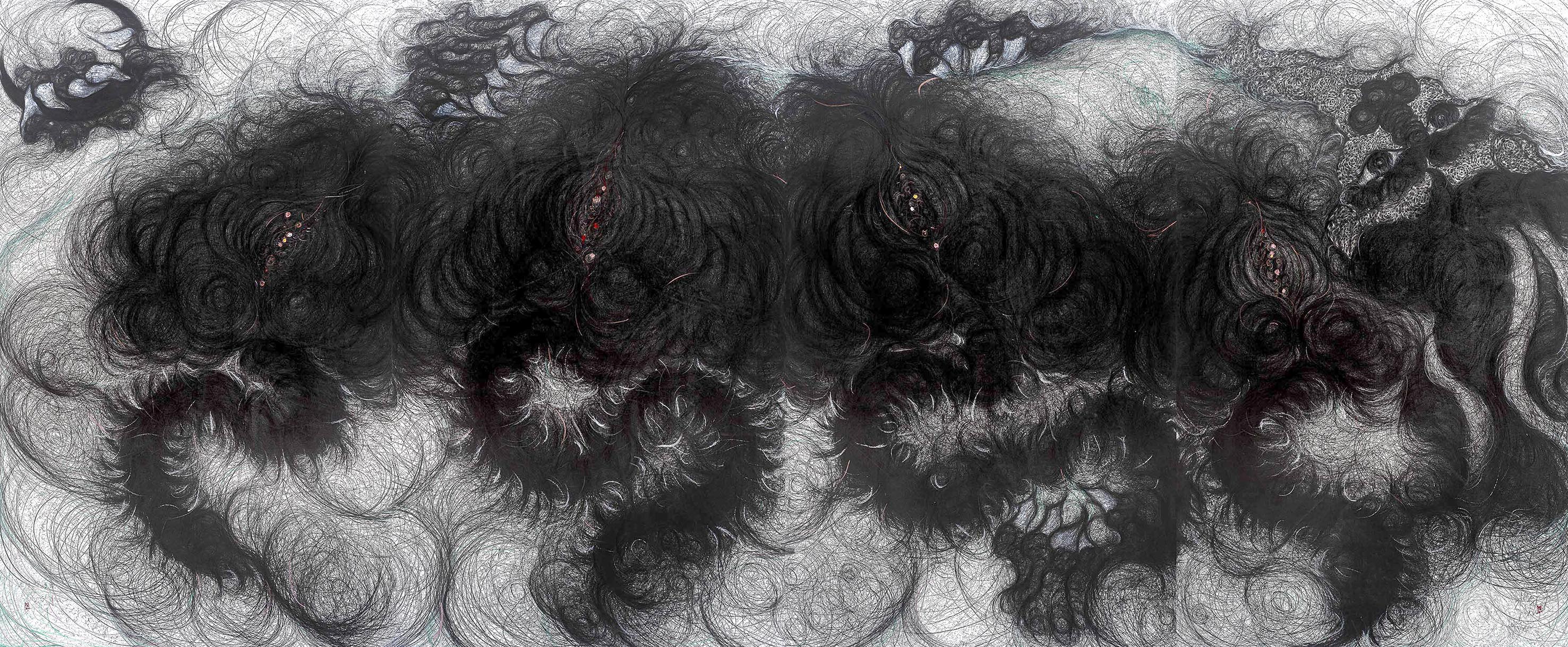 Park considera il medium sempre mutevole del disegno, rivitalizzando l'iconografia del drago in un dialogo creativo con il vasto mondo dell'arte moderna e contemporanea. Il potere della sua arte deriva dall'eccezionale unicità della sua pratica artistica: disegnando ossessivamente sulle sue immense tele con una minuscola matita, il processo pittorico di Park ricorda una danza ipnotica, in cui i suoi gesti fluidi, che balzano qui a là sulle vaste superfici massimaliste, eseguono una sorta di rituale taoista, ridando virtualmente vita alla figura del drago e creando una sorta di connessione profonda e trasformativa tra l’Artista e le attraenti fanciulle soggetto delle sue opere.