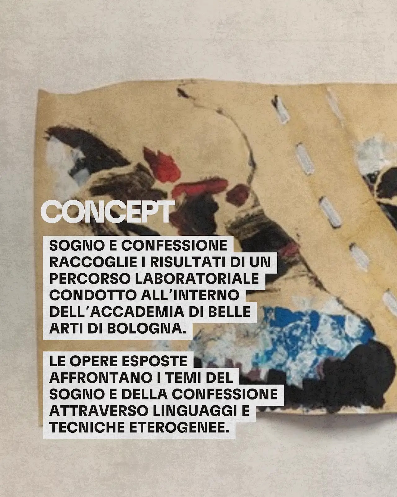 Nel programma di Opentour 2025, promosso dall’Accademia di Belle Arti di Bologna, la mostra Sogno e Confessione, a cura di Greta Affanni (@affannig) presenta i lavori di una selezione di studenti del corso di pittura del professor @leonardosantoli , nell’ambito del workshop Materia | Superficie.