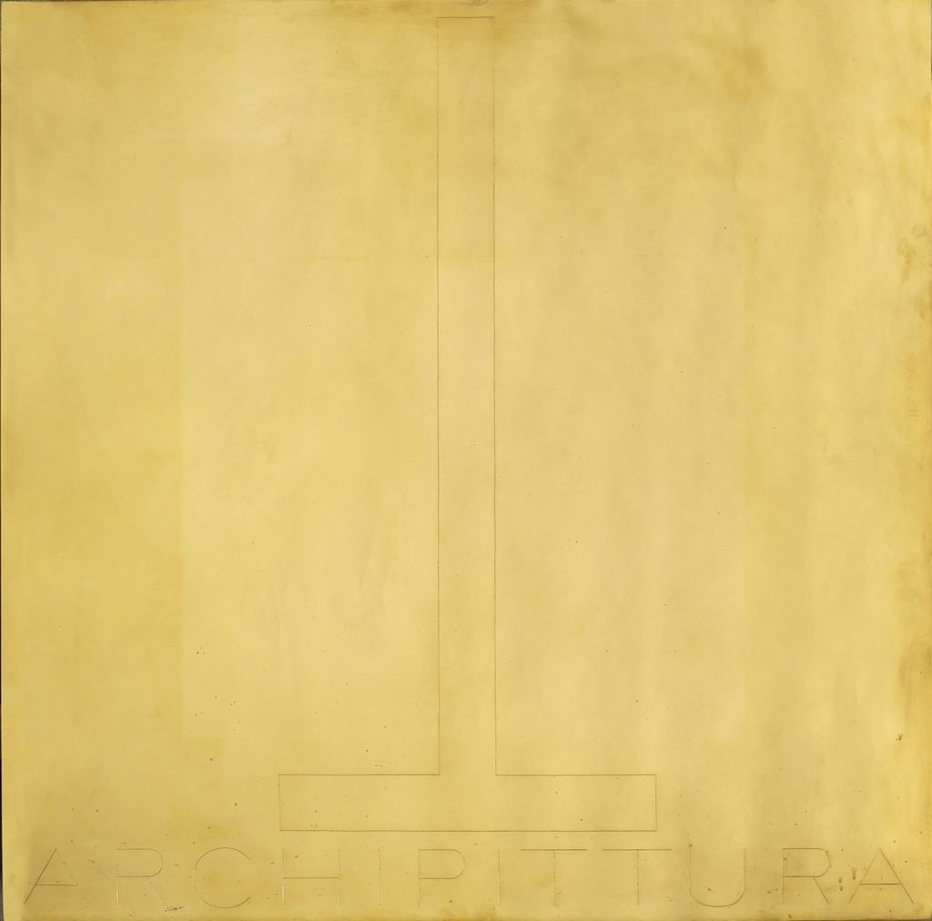 Per la mostra nella galleria di Villa Massimo Alfredo Pirri ha scelto il lavoro Verso N e l’artista tedesco Gerhard Merz espone Archipittura, un’opera in ottone inciso.