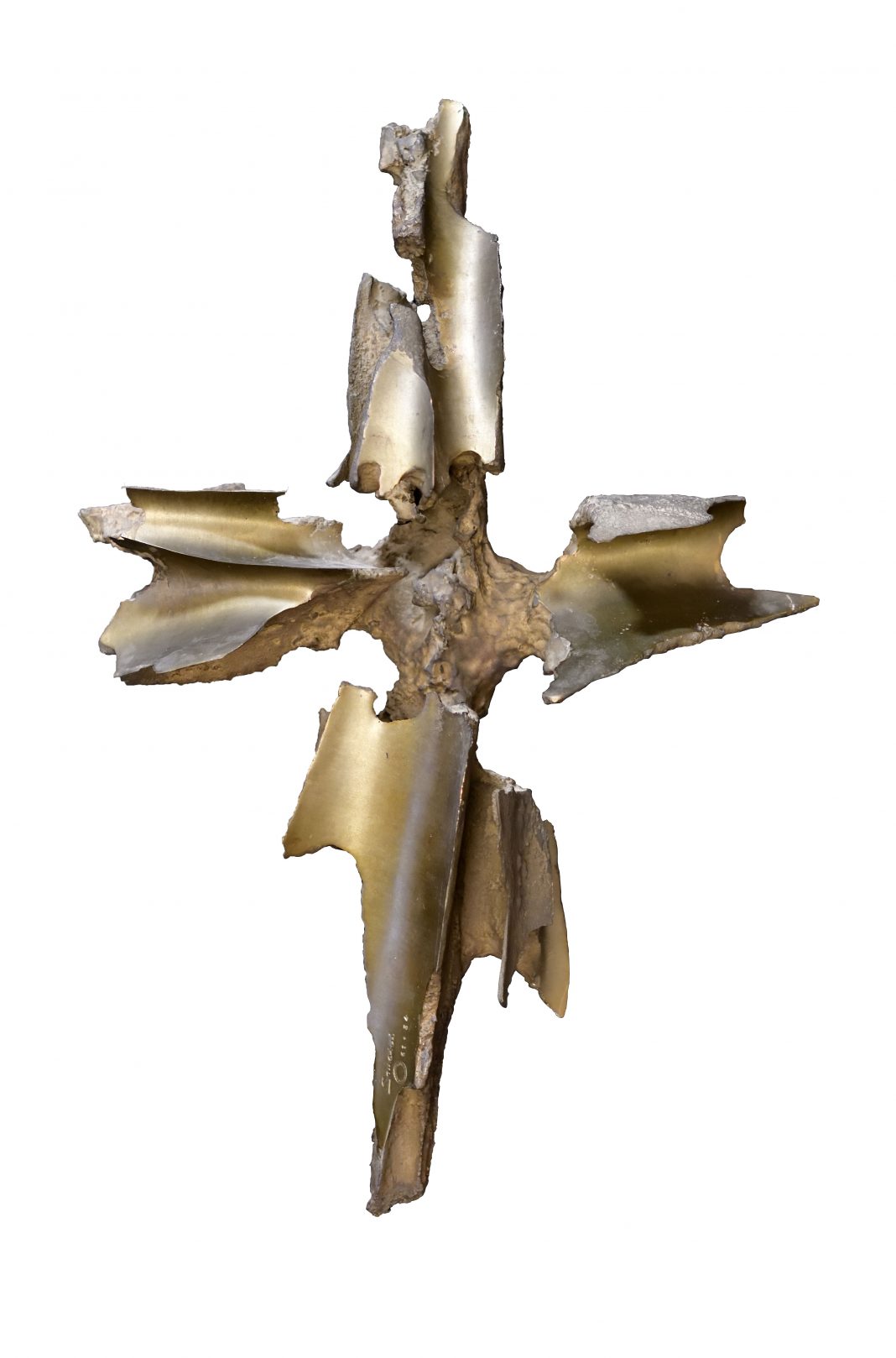 Il tema del “sacro” nel lavoro di Francesco Somaini, che innerva la sua scultura, si estende nelle committenze ricevute a interventi musivi e progetti per vetrate. Nella sua originalità, esso scaturisce da una riflessione sui processi di generazione, trasformazione, morte e rinascita, che sono al centro della sua ricerca plastica, fondata sulla volontà di affermare una dimensione di vitalità all’interno della materia. Rispetto alle diverse fasi della sua attività creativa in cui emergono soggetti ad esso legati, anche in ragione di simbologie da lui attivate autonomamente o tradotte in opere a destinazione liturgica, nella mostra in corso sono presentati alcuni nuclei di lavori particolarmente inerenti all‘idea di “sacro” presente nella sua opera da sempre: in particolare ne sono protagonisti la serie dei Martìri del 1958-1961, che declinano il motivo della croce con un approccio di carattere laico-esistenziale legato al clima culturale post-bellico (tema ripreso nel ciclo delle Carnificazioni di un’architettura degli anni settanta), e il Grande Retablo della vita e della morte, un’installazione realizzata tra il 1967