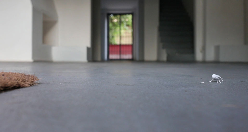 Il progetto racconta, mediante opere realizzate nell’arco cronologico di circa due anni (2018-20) questo attraversamento continuo. A tale percorso si aggiungerà un’incursione site specific realizzata all’interno dello spazio di AlbumArte appena finito il lockdown, dove l’artista segue i movimenti di una piccola mosca bianca, dispositivo già utilizzato in diverse occasioni come strumento per far emergere nuovi punti di vista. Lo spostamento metaforico della mosca, registrato in un video e poi restituito al pubblico per farne nuovamente esperienza, dà il titolo alla mostra.