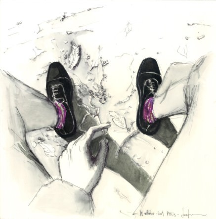 In una sequenza continua che si dipana come una suite musicale o una pellicola cinematografica, Sonia Giambrone ferma sulla carta tracce di cose viste, sentite, vissute. Andare, tornare, restare; viaggi, percorsi, frasi ricordate; segni, ritagli, colori prosciugati dalla carta. Un tracciato altalenante tra prima e poi, tra sé e il mondo, tra parole e cose, che si specchia e si consuma in schemi, numeri, mappe. Tra Bomarzo e Parigi: il disegno come strumento perfetto per addomesticare l’esperienza.