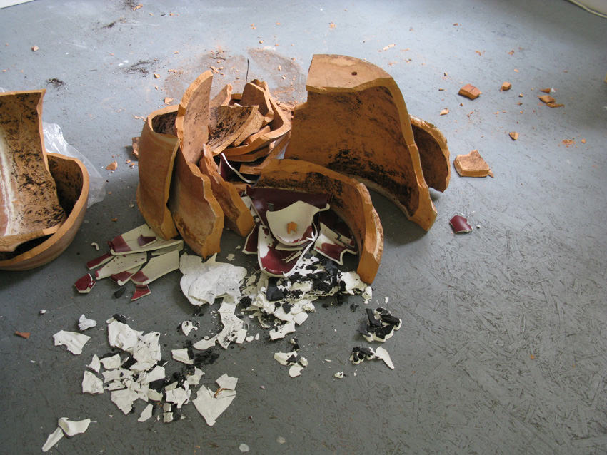 I frammenti dei vasi in terracotta sembrano inoltre formare le reliquie di un edificio di cui si può fare esperienza visitando un'antica città come Roma caratterizzata da un’estetica teatrale dove il dramma sembra realizzarsi in ogni angolo. Accanto a strade in cemento, rovine archeologiche completano uno scenario contraddistinto da monumenti antichi come il Panthéon. Una colonna crollata, frammenti di un tempio, pietre sparse – resti archeologici che possono essere osservati sia dall'alto che dal basso come in un “fermo immagine” di un vecchio film storico.
