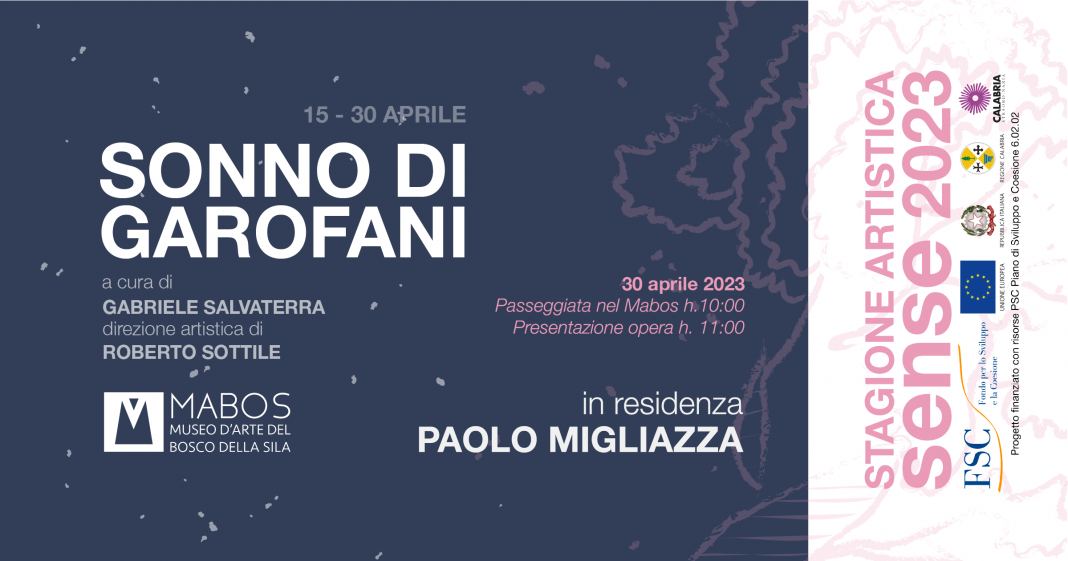 Sabato 15 aprile, il MABOS – Museo d’Arte del bosco della Sila darà il via alla prima residenza SENSE del 2023 dal titolo SONNO DI GAROFANI. Artista in residenza lo scultore Paolo Migliazza, con la curatela di Gabriele Salvaterra e la direzione artistica di Roberto Sottile. Il 30 aprile, a chiusura,