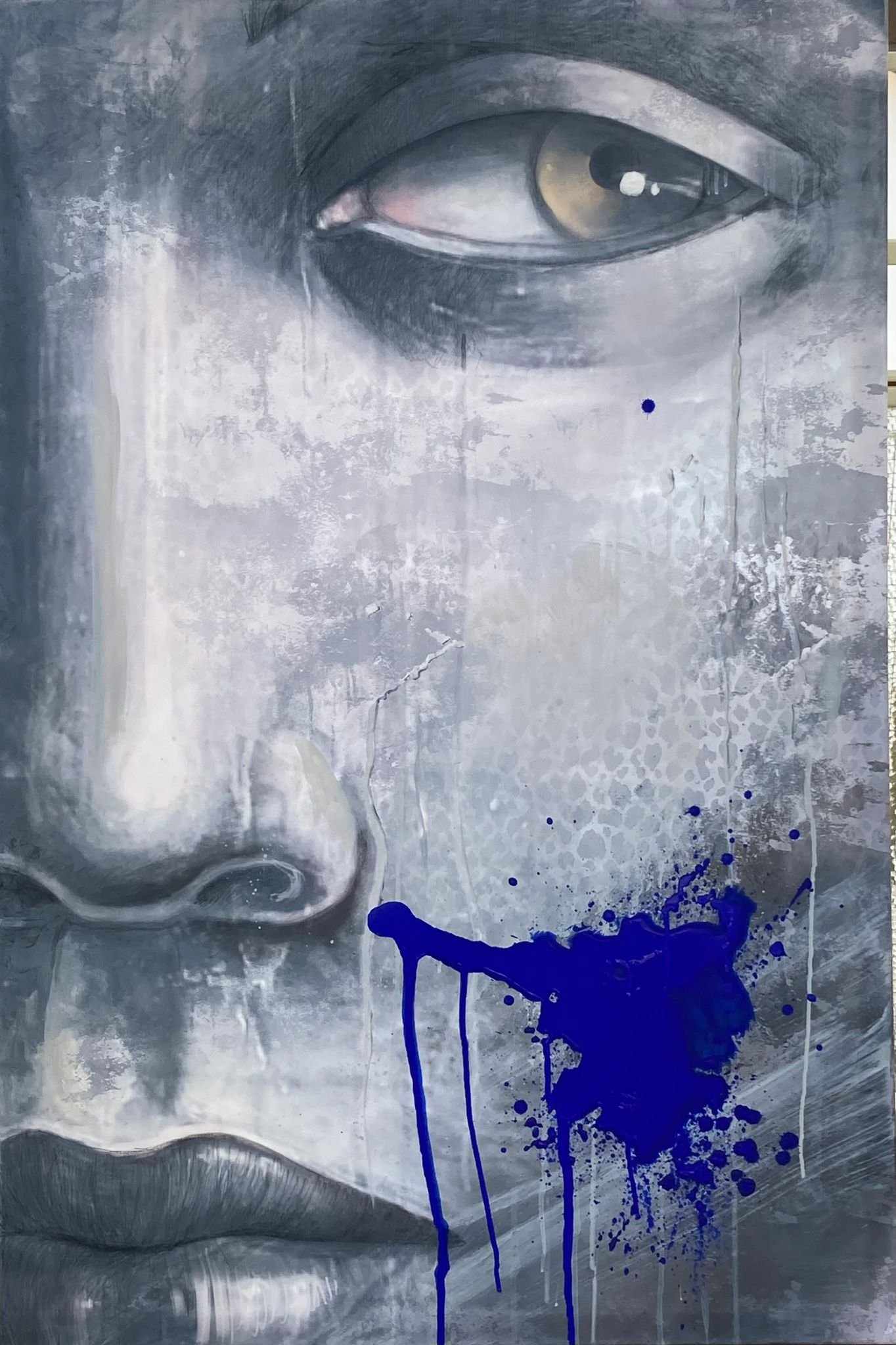Patrizia Calovini si affida auna figurazione colta e armonica, dove la sua padronanza tecnica ci permette di cogliere la sua personale visione della donna contemporanea, le cui sembianze sono talmente maestose da assumere tratti quasi mitologici. Le sue figure femminili, eleganti nelle loro armoniose volumetrie, si fanno simboli viventi dei soprusi e delle ingiustizie che sono costrette a subire ogni giorno; una macchia di colore su una guancia, lesioni e cicatrici sul volto, un trittico in cui l’immagine di un viso femminile inizia lentamente a svanire e cancellarsi, divengono il mezzo più efficace ma anche più naturale con il quale la pittrice ci induce a riflettere sulla brutalità e sulla violenza di cui spesso è oggetto la donna nella nostra società, una violenza sia fisica che psicologica che spesso non ha altro fine se non quello di ledere e cancellare l’essenza stessa del femminile. Ciononostante, le donne di Patrizia Calovini resistono, soffrono ma sopravvivono, e questa capacità di superare ogni possibile difficoltà viene espressa attraverso gli occhi, intensi e drammatici, nei quali si può cogliere la consapevolezza di una sofferenza troppo spesso soffocata.