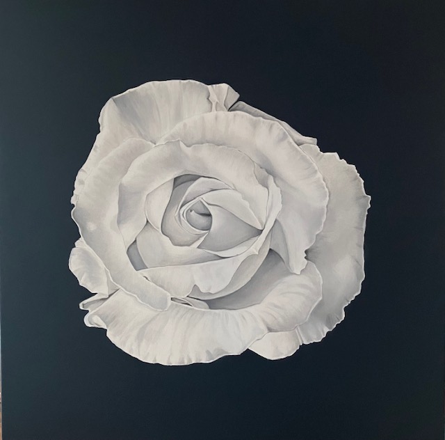 Anche Anna Maria Alessandrini utilizza un proprio personale registro espressivo che fa ampio uso della simbologia e della metafora; attraverso i tre simboli della rosa, della piuma e della farfalla, l’artista pone al centro del suo lavoro la celebrazione del desiderio di libertà della donna contemporanea. L’eleganza della composizione e la dolcezza cromatica che si percepisce nitidamente all’interno dei suoi lavori, dove la maestria tecnica non è seconda all’armonia dell’insieme, non deve però trarre in inganno; il suo è infatti un linguaggio forte e fiero, addirittura politico, e non è un caso che la parola “leggerezza” venga scritta personalmente dall’artista sulla tela, segno tangibile di una forza di volontà che diventa presto rivendicazione di un diritto, ovvero quello della donna di poter essere “leggera” e librarsi nell’aria, proprio come una piuma o una farfalla che, spinta dalla voglia di vivere, è riuscita a lacerare il suo bozzolo per (ri)sorgere a nuova vita.
