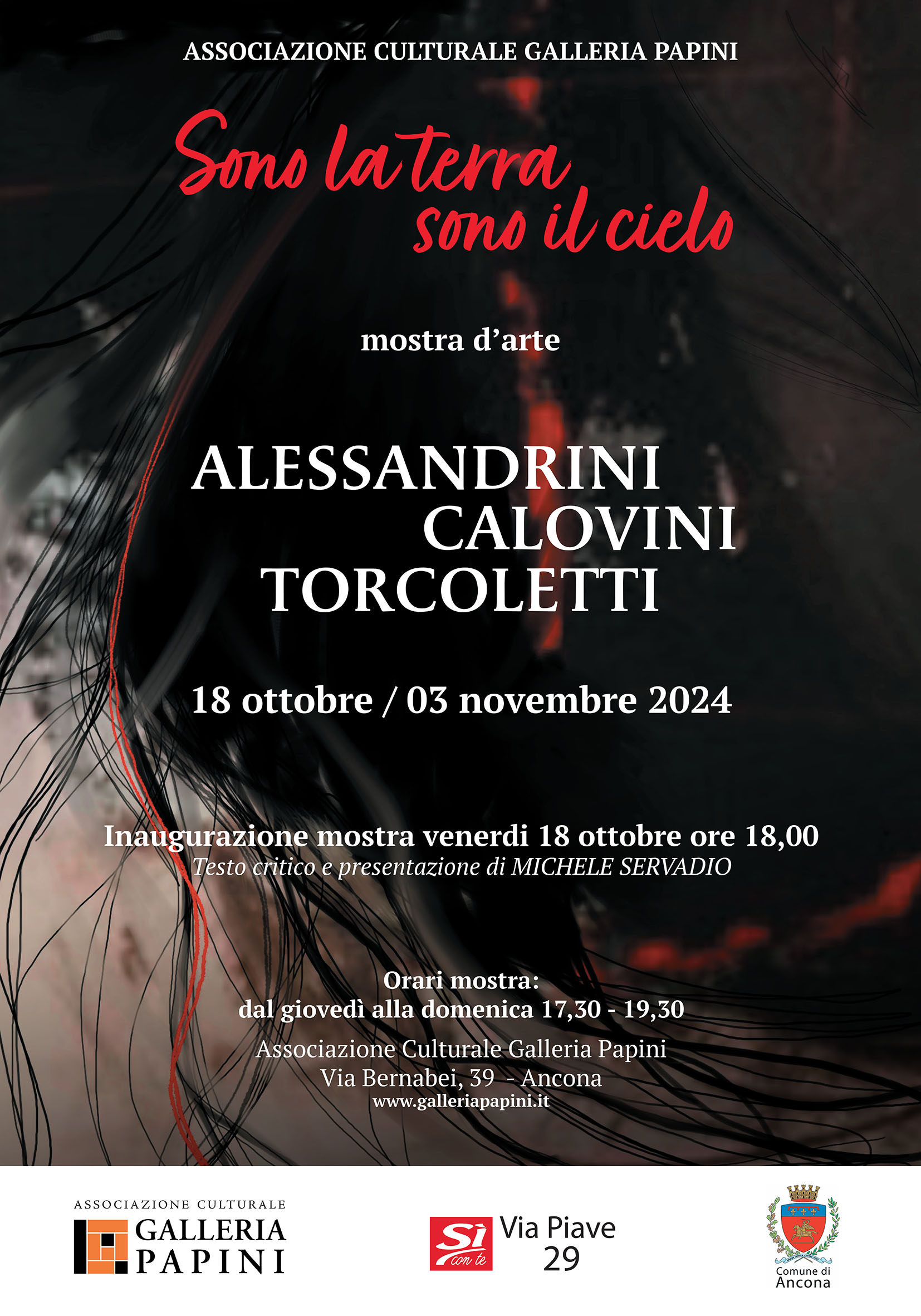 La Galleria Papini propone la mostra d'arte "Sono la terra sono il cielo" di tre artiste contemporanee: Anna Maria Alessandrini, Patrizia Calovini, Tiziana Torcoletti.