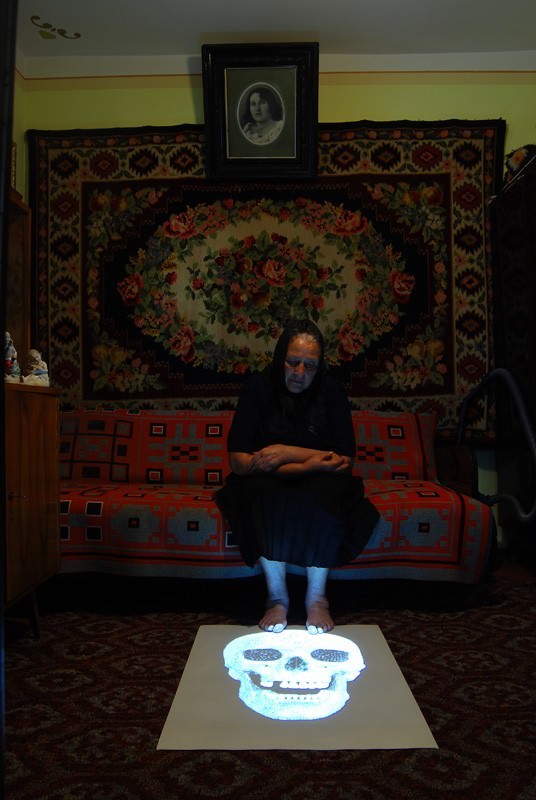 Memorial (video, 2009) is a result of a project led by the Ukrainian collective in a village of their country. As SOSka quotes: “The heroes of the work are old women, keepers of the authentic ritual of funeral crying, a ritual having pagan roots and rejected by modern religion. A slide-show on the history of art of the 20th century was prepared, having selected the conditional beginning of contemporary art – Marcel Duchamp’s Fountain. The beginning of a new century is always a period of summarizing. So the symbol of the end of art has been designated to the "diamond skull" by Damien Hirst". With its whole work, SOSka Group reflects about the global economic crisis and the fall of the art market and pushes to the reconsideration of values in the history of arts. SOSka simply and directly ask to the audience: "Can contemporary art exist outside the market? Can we really speak about the death of art?"