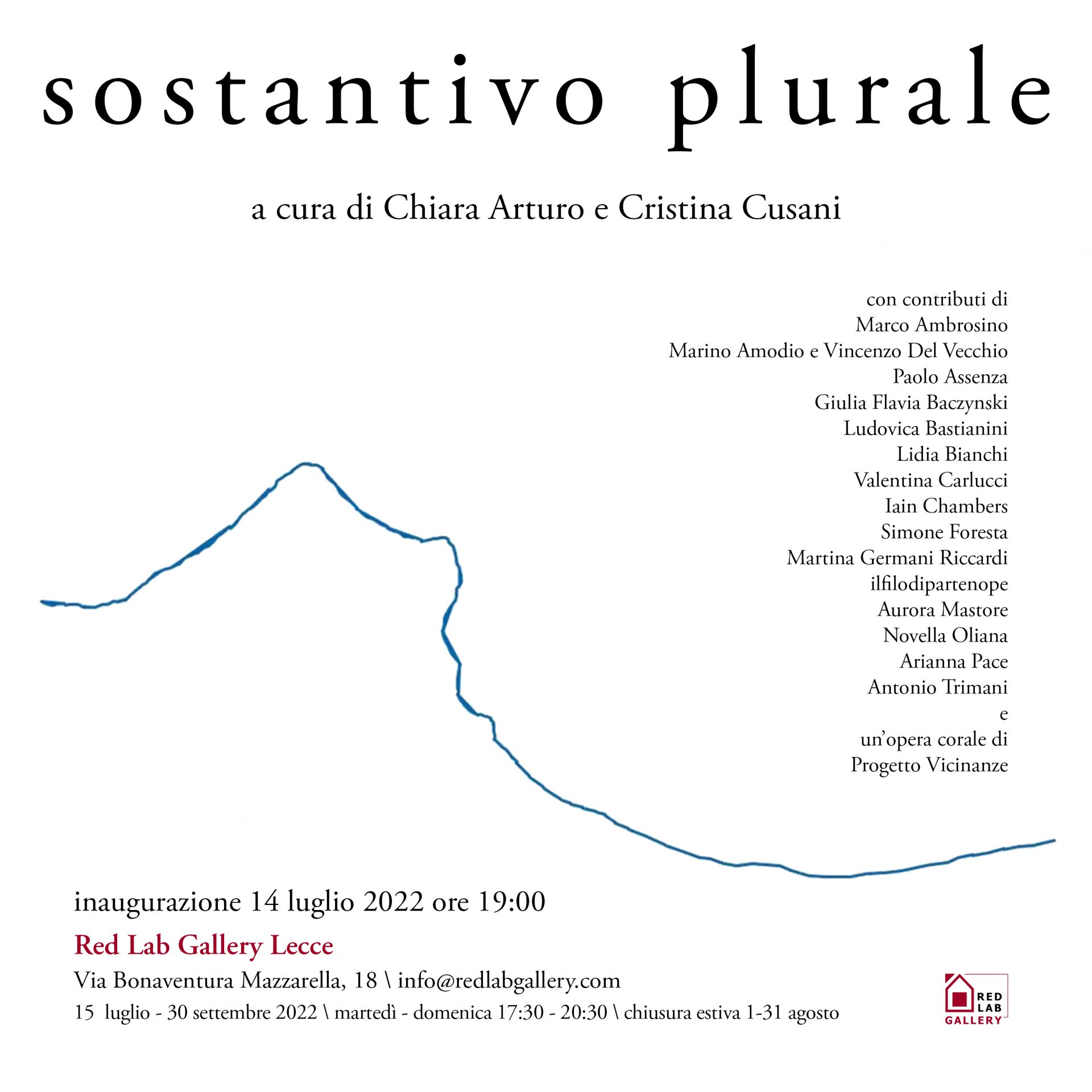 Red Lab Gallery Lecce è lieta di annunciare Sostantivo plurale, una mostra a cura di Chiara Arturo e Cristina Cusani, che si terrà nello spazio espositivo di Lecce.