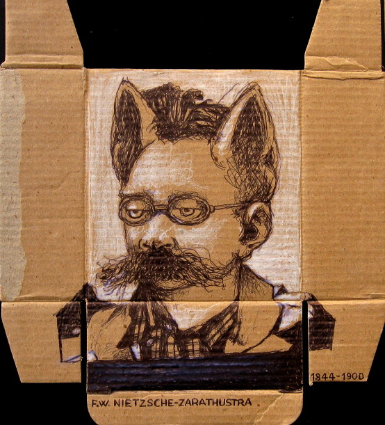 Detto questo, di che parlare? Di Feliscatus? Quel Feliscatus che appartiene al passato? Il gatto domestico che non sono più? Di Feliscatus-Nietzsche, la prima parte di quel gruppo di lavori, che per seconda parte, dopo una fase intermedia ancora da definire esattamente nel significato e nella collocazione, ha avuto "La casa di Nietzsche", fatti l'anno scorso? O di pensare a farne altri per poterne scrivere dopo?