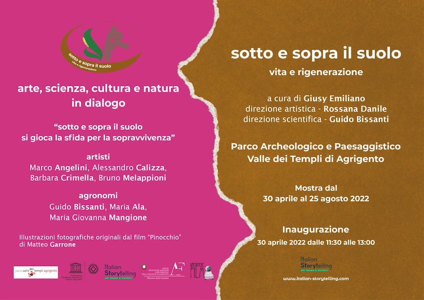 Il giorno 30 aprile 2022 verrà inaugurata nel Parco Archeologico e Paesaggistico della Valle dei Templi di Agrigento la prima edizione del progetto Sotto e sopra il suolo, vita e rigenerazione con la curatela di Giusy Emiliano e la direzione artistica di Rossana Danile.