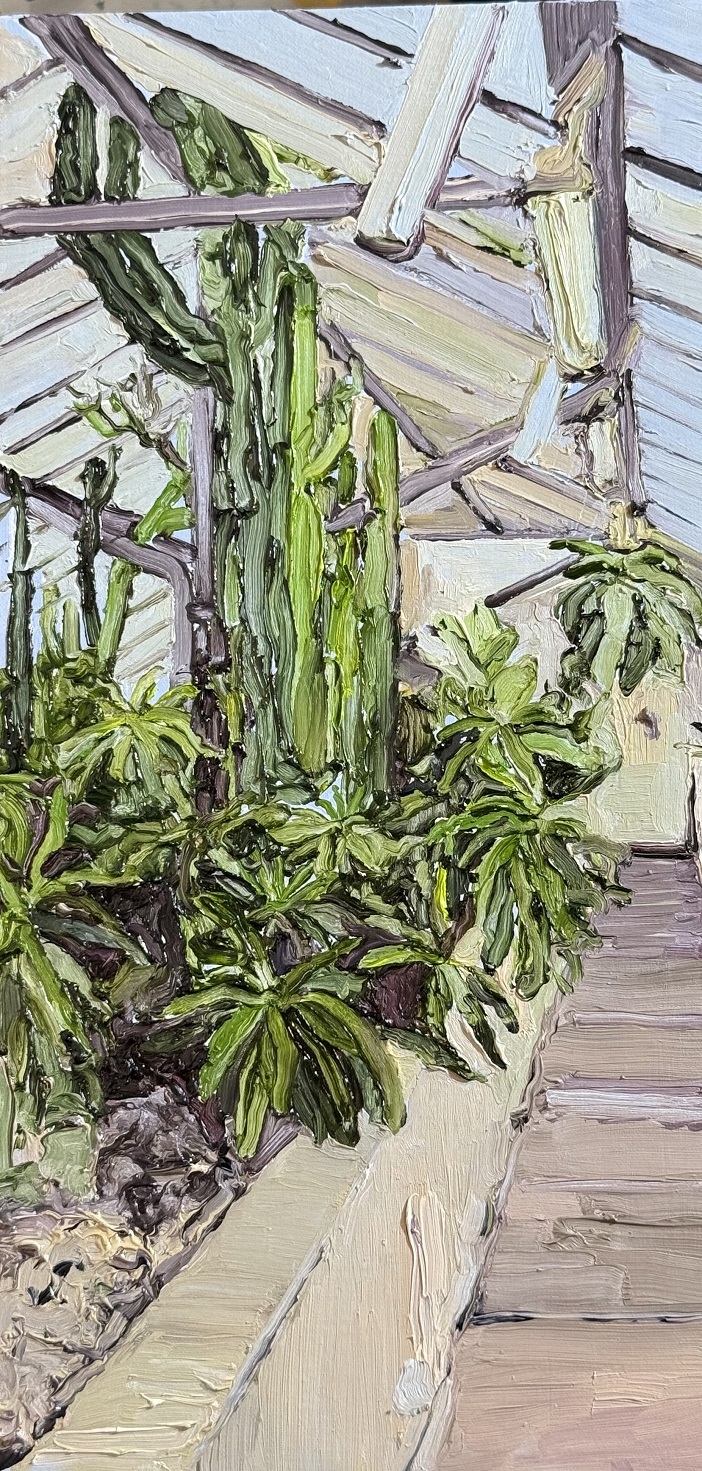 Nelle atmosfere di Elisa Selli è la calura a destabilizzarci: ci priva delle forze, ci costringe a coabitare con una natura che, per quanto rigogliosa, porta in sé la debolezza dell’essere. La flora, protagonista assoluta, ha la forza che contraddistingue la natura, ma vive racchiusa in serre dove, osservando, percepiamo l’umidità e la conseguente fatica di muoversi e pensare. Un’afa che appare più esistenziale che fisica.
