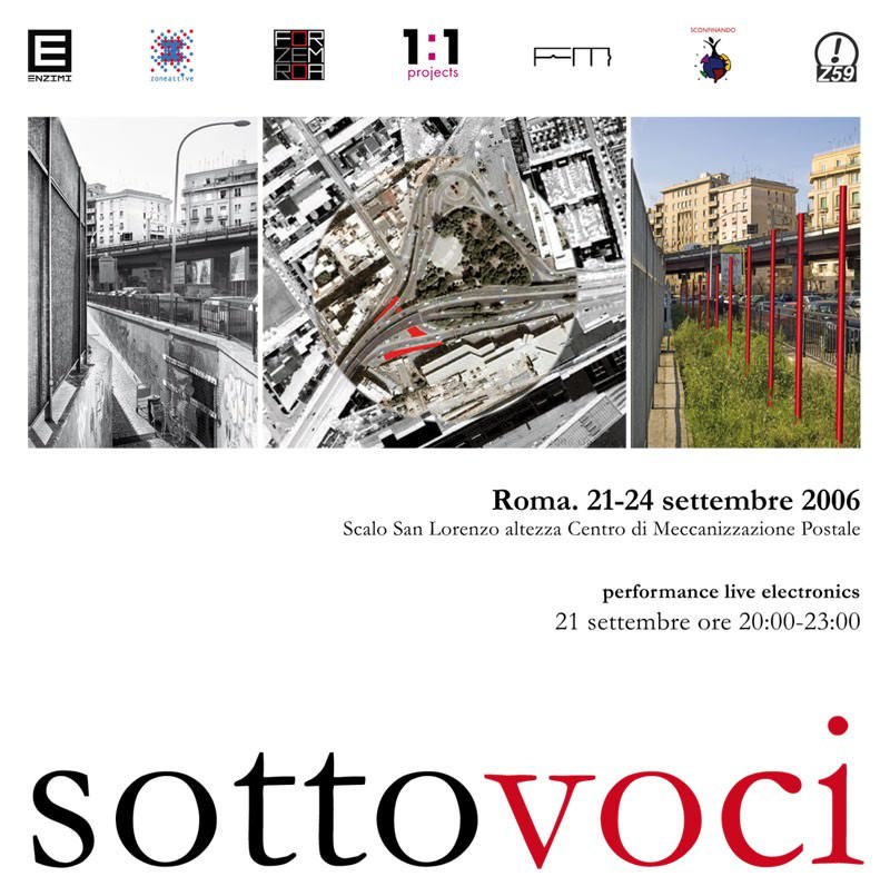 sottovoci è un intervento performativo e sonoro che attiva una riappropriazione creativa dell’area limitrofa allo scalo San Lorenzo. Originariamente pensato come sistema di sottopassaggi, questo spazio si è rivelato negli anni un luogo permeabile, in grado di accogliere l’emarginazione e di fornirgli, a suo modo, infinite forme di protezione. Nel 2004 il sottopassaggio è stato sgomberato e interrato.