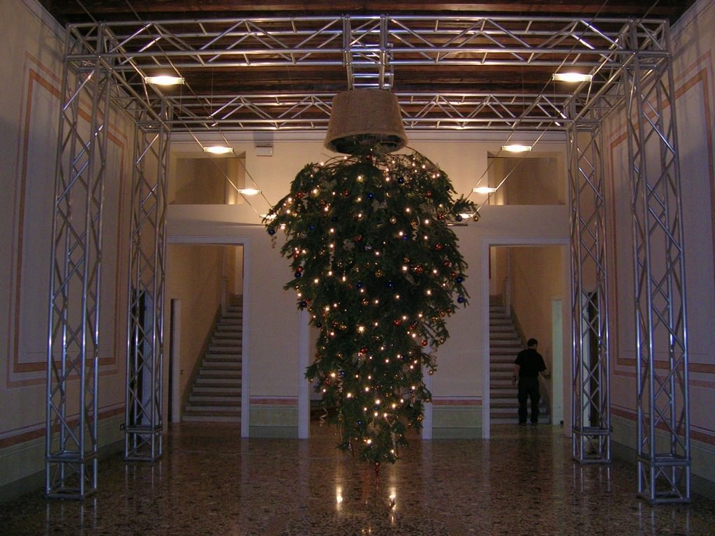 Danilo Balestro presenta un’installazione con la quale il tema e la modalità poetica del rovesciamento, le cui sperimentazioni precedenti sono documentate in mostra, si applicano ad un simbolo sociale. Un elemento naturale potente reso domestico da una consuetudine culturale, diventa mediante l’alterazione fisica del capovolgimento, inquietante emblema di un Occidente in crisi.