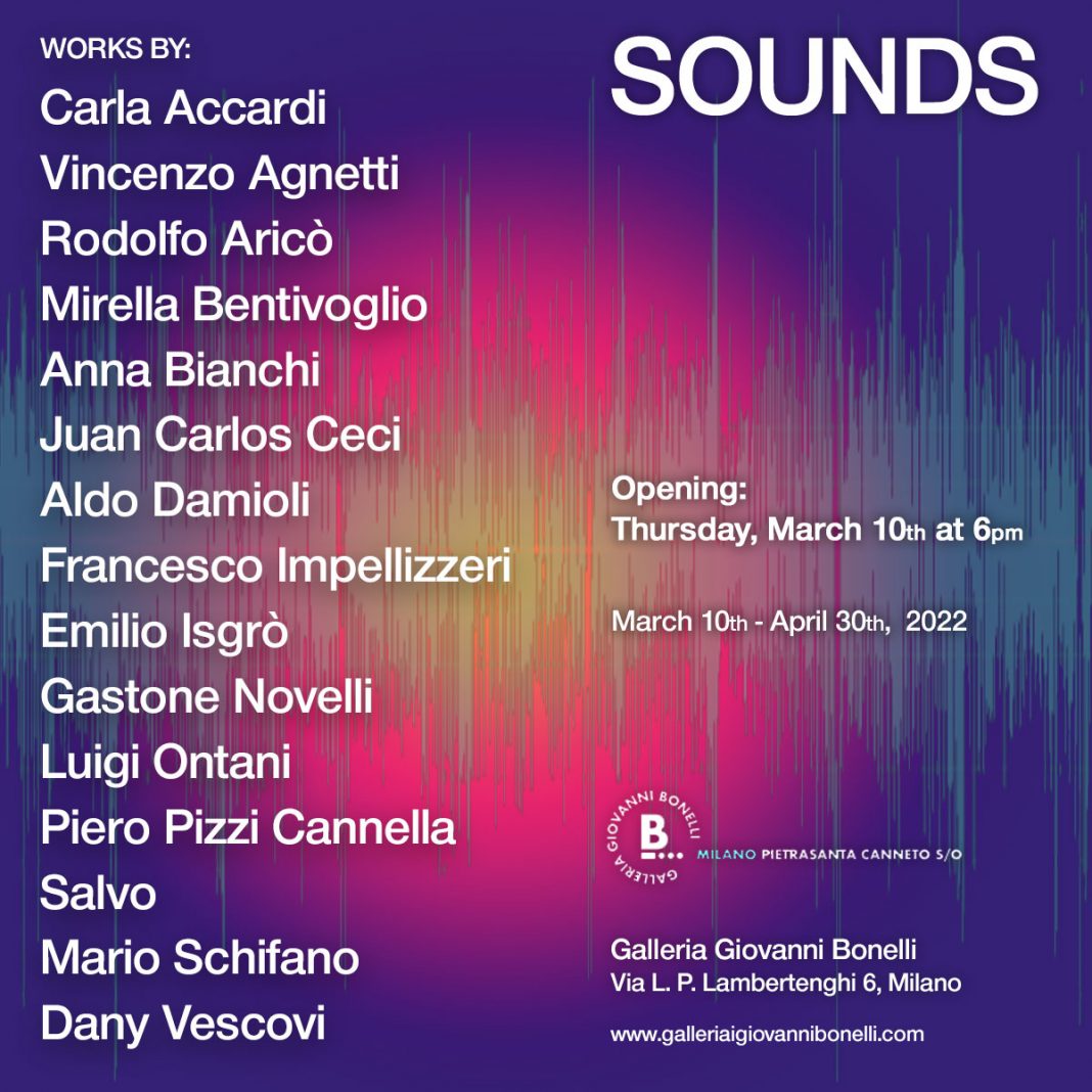 Giovedì 10 marzo a partire dalle 18.00 si inaugura la nuova stagione espositiva della sede milanese della galleria Giovanni Bonelli con la mostra SOUNDS. Il progetto è orientato alla ricerca e valorizzazione di opere sia di artisti italiani già storicizzati che di generazioni più giovani per creare un insieme polifonico dove le singole opere possano essere percepite come “voci” autorevoli ed autonome in un contesto che consenta di goderne sia singolarmente che polifonicamente.