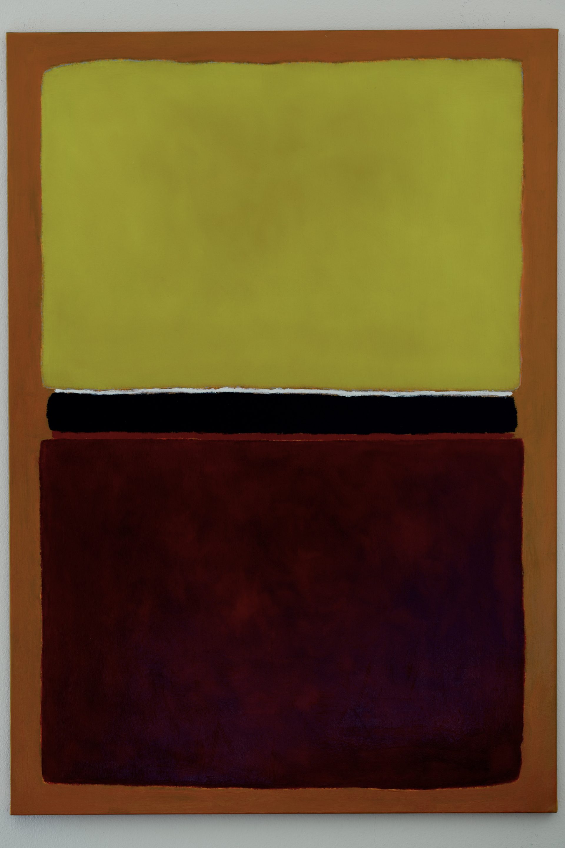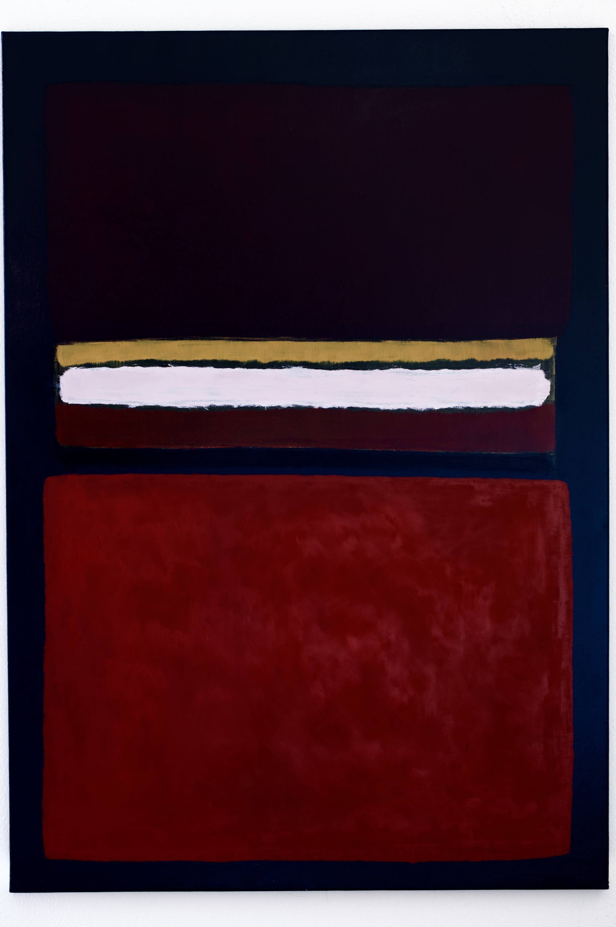 Le superfici sono divise con chiarezza e sono spazio per l’azione pittorica e la distribuzione omogenea del colore, le tracce delle pennellate quasi scompaiono. Il colore si fa catalizzatore di emozioni, i quadi lasciano spazio alla sua contemplazione.