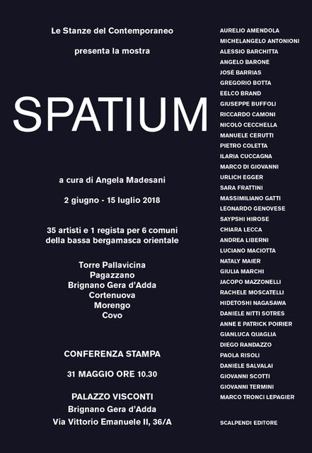Spatium è un termine che racchiude in sé differenti accezioni, così come la mostra: rappresenta lo spazio reale, la superficie, l’estensione delle sale e dei luoghi che ospitano le opere, ma anche lo spazio interiore e fisico che i lavori degli artisti vanno ad occupare e infine lo spazio inteso come la distanza che separa le varie sedi e che il visitatore deve percorrere, mettendosi in dialogo lui stesso con contenitori e contenuti, con significante e significato, in un processo di scoperta di luoghi, persone e cose.