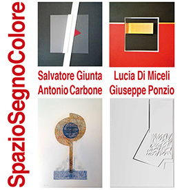 Dal 14 al 26 ottobre 2017 la Galleria Arianna Sartori (Via Ippolito Nievo 10 - Mantova) ospiterà la mostra collettiva SpazioSegnoColore, in cui verranno esposte le più recenti opere di quattro artisti - Antonio Carbone, Lucia Di Miceli, Salvatore Giunta e Giuseppe Ponzio - che, pur nella loro apparente eterogeneità (che spazia dal rigore dell’astrattismo geometrico ad una caotica forma di scritto-pittura archetipica), sono accomunate da un’evidente ricerca nel concepire lo spazio, il segno e il colore come i tre elementi chiave su cui incentrare una nuova forma di linguaggio artistico.