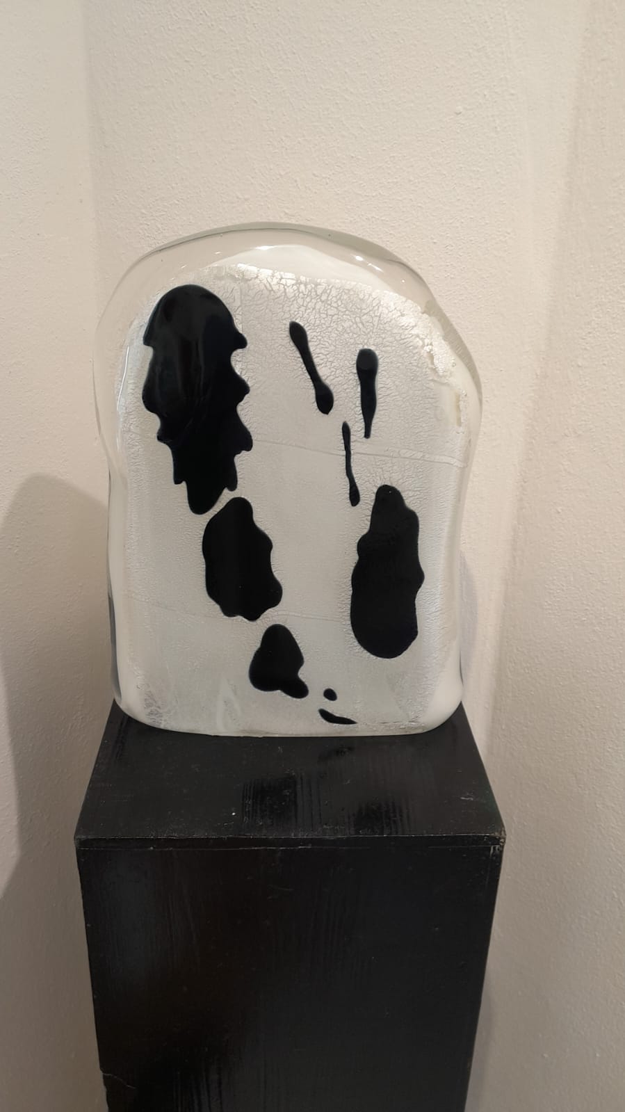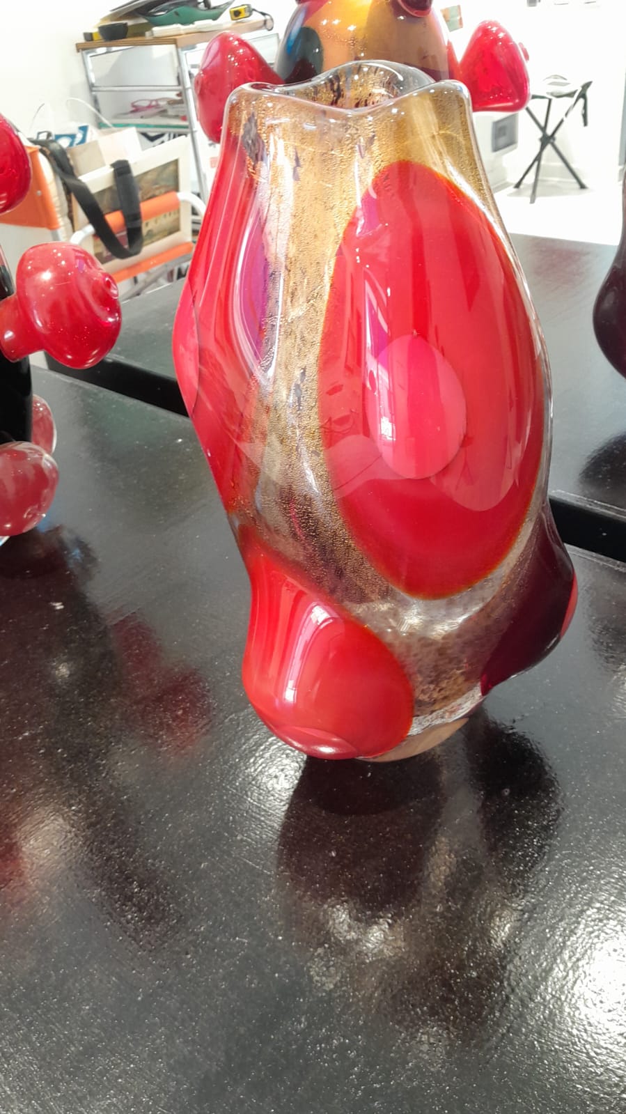 Roberto Barberi, pittore e scultore di origini svizzere, trasferitosi in giovanissima età in Versilia, espone vasi di straordinaria manifattura, eseguiti, sotto la sua personale guida, dalle abili mani di vetrai delle Vetrerie di Murano. Impreziositi da colori che rimandano alle opere degli altri due artisti in mostra, come il bianco e nero dell’opera di Aidan Salakhova e il rosso del dipinto di Claudio Cargiolli, e gli azzurri, che richiamano invece il cielo e il mare della Versilia.