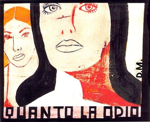Donne che di continuo sbucano in campo, motociclette d’epoca, animali e animaloidi vari, teschi e scheletri, personaggi da fumetto, scrittura da cartellonistica, maschere e faccine, spunti da scrittura automatica