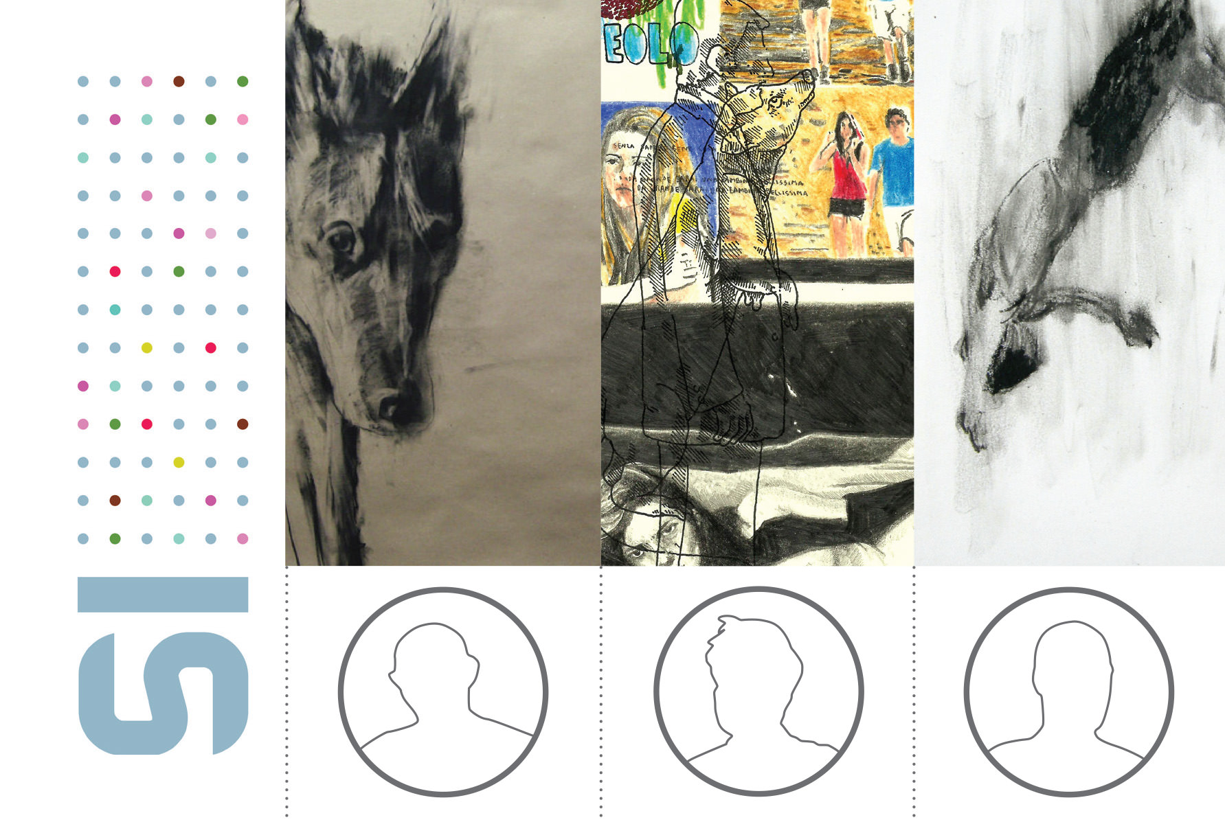Dario Molinaro, in particolare, ha fatto del disegno la forma privilegiata d’espressione. Sulla carta si combinano un universo di personaggi, segni, animali e simboli derivati dal suo vissuto quotidiano o dal mondo circostante, dalle letture e dall’arte. Maurizio e Francesco, invece, fanno dialogare le loro opere pittoriche con i disegni, intesi non come schizzi preparatori, ma come indagine a sé stante.