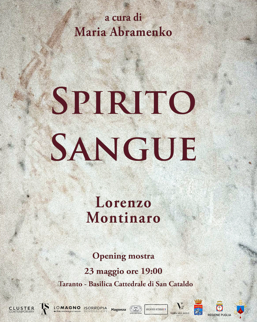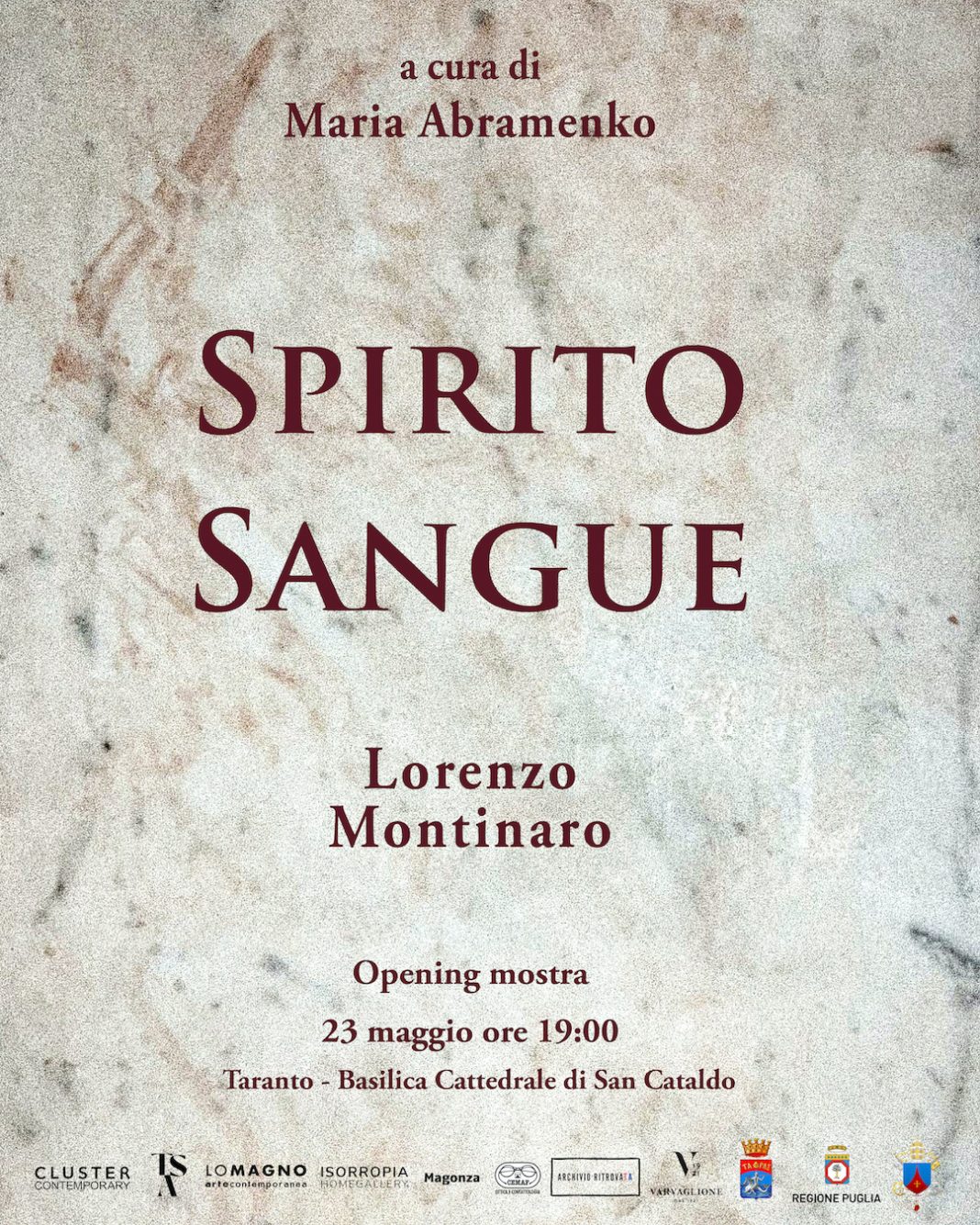 Contemporary Cluster è lieta di presentare Spirito Sangue, mostra personale di Lorenzo Montinaro a cura di Maria Abramenko presso la Basilica Cattedrale di San Cataldo, a Taranto, che inaugurerà venerdì 23 maggio alle ore 19.00.