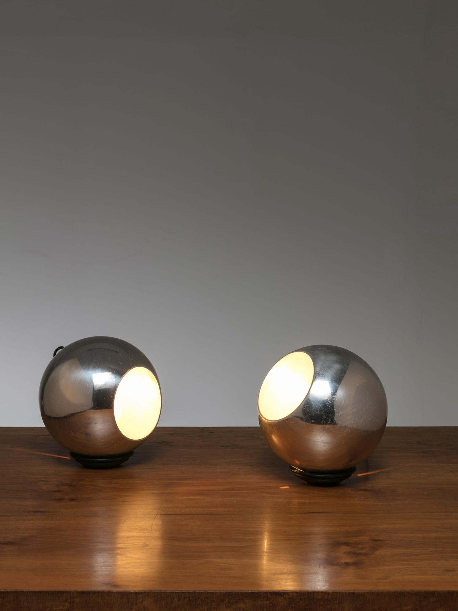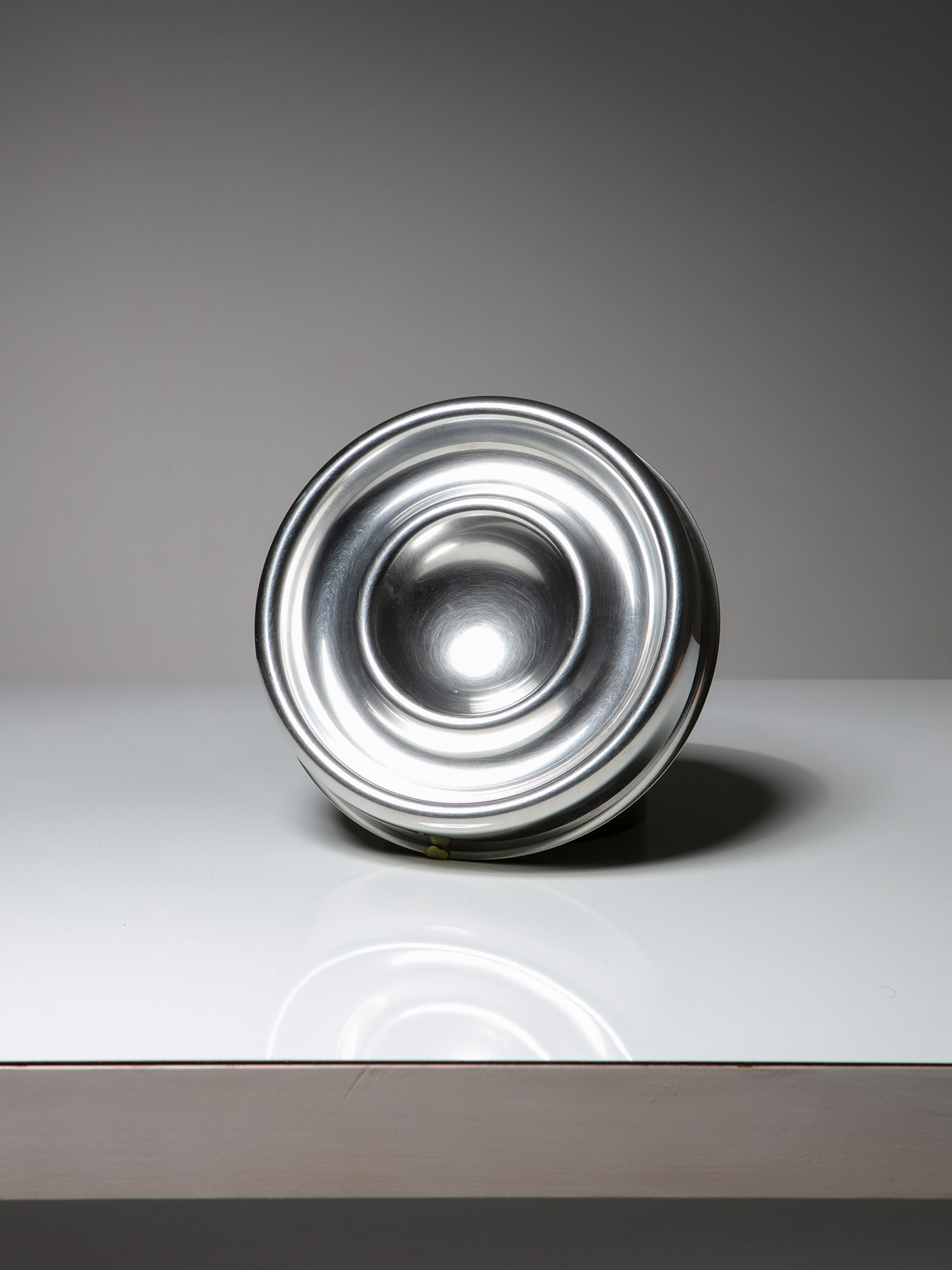 Alessandro Pedretti racconta l’allestimento dove la vicinanza tra l’alpacca satinata di un vassoio di Bruno Munari e l’acciaio inossidabile lucidato di un porta foglietti di Enzo Mari, tra un metallo argentato di un candeliere di Lino Sabattini ed un portacenere in acciaio cromato di Ico Parisi crea tra loro delle rifrazioni, pronte a cambiare e a scambiarsi nel corso della giornata, come si trattasse di un dimmer naturale che illumina la galleria.
