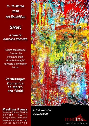 Dal 9 al 15 Marzo negli Spazi Espositivi Medina Roma una mostra personale dedicata a SReK. Artista autodidatta e sperimentatore, è presente da qualche anno nel panorama artistico italiano spaziando dal ritratto all’astrattismo.