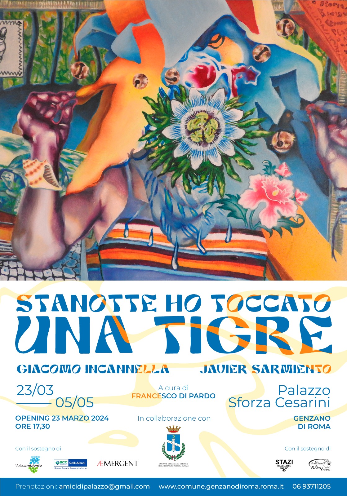 Un teatro è costituito essenzialmente da una scena, visibile, espressa, e dalle quinte, nascoste alla vista. Quotidianamente ci muoviamo affannosi tra questi due stadi dell’esistenza - interno ed esterno - cercando di celare le intime pulsioni. Sulla base di questo teatro dei sogni prende forma la mostra: “Stanotte ho toccato una tigre”, un’esperienza che traghetta il soggetto in uno spazio di mezzo che ciascuno abita e vive, un sub-ecumene dove l’illusione si mescola al dramma per la propria esistenza.